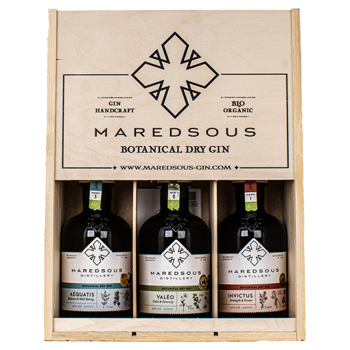 Το Abbaye de Maredsous Gin, που προσφέρεται σε συσκευασίες των 3 φιαλών των 0,5 λίτρων το καθένα, σε αυτό το εντυπωσιακό ξύλινο κουτί, είναι απόδειξη δεξιοτεχνίας και ποιότητας. Αυτό το βιολογικό τζιν ενσαρκώνει μια πλούσια παράδοση, παρέχοντας ένα χαρακτηριστικό προφίλ γεύσης που συνδυάζει τη στιβαρή ουσία του αρκεύθου με μια αρμονική σειρά βοτάνων.