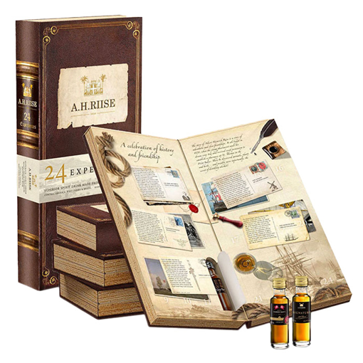 Ανακαλύψτε το ημερολόγιο ρούμι A.H. Riise 24 Experiences 2022, μια ειδική συλλογή με 24 μικρά μπουκάλια γευσιγνωσίας (0,02L το καθένα) γεμάτα με αποκλειστικά ρούμια από τις A.H. Riise και Santos Dumont. Αυτό το σετ προσφέρει μια ποικιλία από εκλεπτυσμένες γεύσεις και μαγευτικά αρώματα, καθιστώντας το έναν τέλειο τρόπο για να εξερευνήσετε τον εξαιρετικό κόσμο των ρούμι A.H.