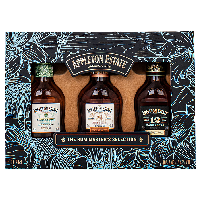 Το Appleton Estate Tripack Masters Selection είναι μια premium συλλογή από τρία μπουκάλια, το καθένα με ένα ξεχωριστό, αριστοτεχνικά κατασκευασμένο ρούμι Τζαμάικας. Αυτό το σετ συγκεντρώνει τα Appleton Estate 8-Year-Old Reserve, 12-Year-Old Rare Casks και τα 15-Year-Old Black River Casks, επιδεικνύοντας την πλούσια κληρονομιά και την εξαιρετική ποιότητα συνώνυμη με το Appleton Estate.