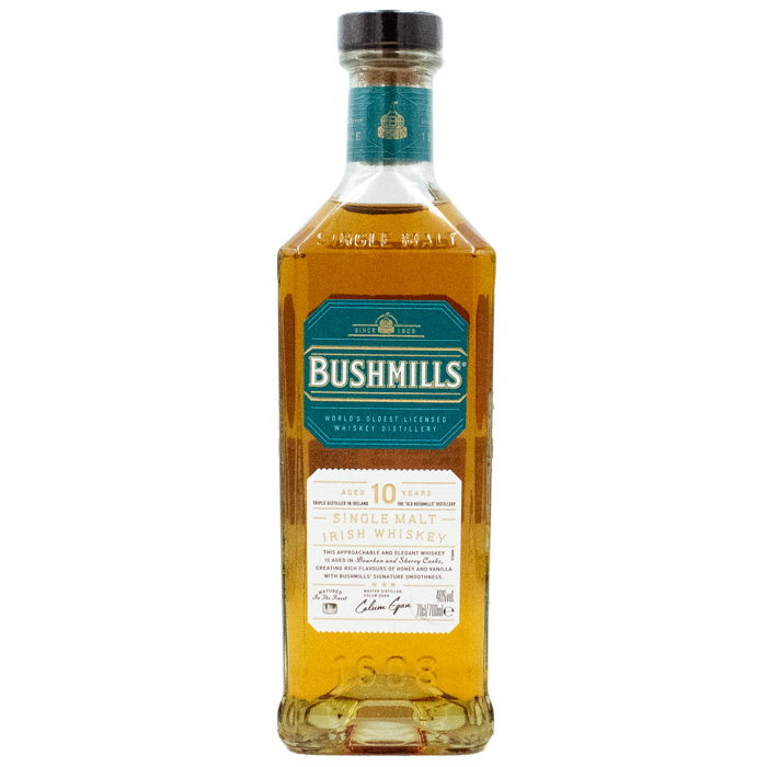Το Bushmills, βρίσκεται στη Βόρεια Ιρλανδία και θεωρείται ότι είναι το αρχαιότερο αποστακτήριο στον κόσμο με άδεια απόσταξης, που δόθηκε το 1608. To Bushmills 10 Year Old είναι ένα Irish Single Malt Whisky τριπλής απόσταξης, που ωριμάζει τουλάχιστον 10 χρόνια σε βαρέλια που προηγουμένως περιείχαν sherry και bourbon. Το malt ουίσκι αυτό αποδεικνύει πως η δεκαετής ωρίμανση του, άξιζε την αναμονή.