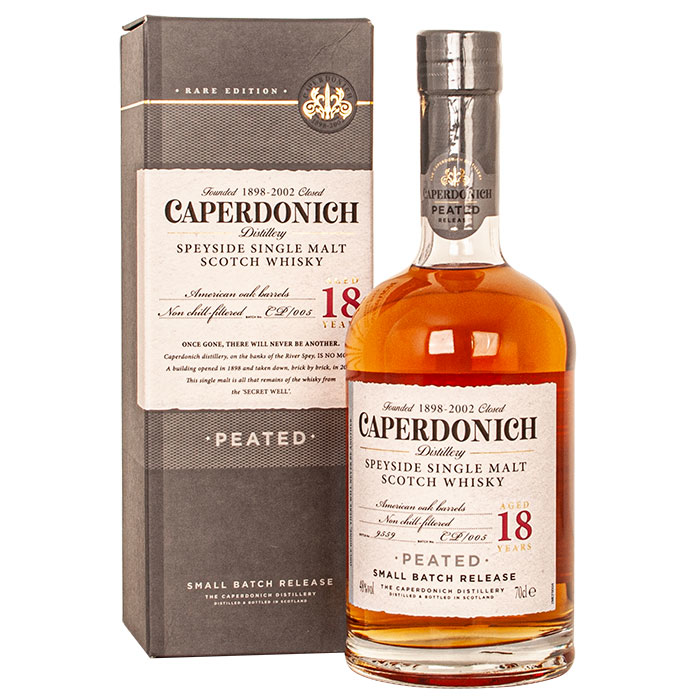 Το Caperdonich Peated 18 Years είναι μια σπάνια και συναρπαστική έκφραση από το κλειστό πλέον αποστακτήριο Caperdonich, που φημίζεται για τις περιορισμένες κυκλοφορίες και τον ιδιαίτερο χαρακτήρα του. Παλαιώνει για 18 χρόνια, αυτό το single malt σκωτσέζικο ουίσκι και προσφέρει ένα σαγηνευτικό μείγμα καπνού τύρφης και εκλεπτυσμένης κομψότητας.