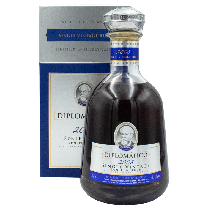 Το Diplomatico Single Vintage 2008 είναι ένα ιδιαίτερο, vintage ρούμι από την Βενεζουέλα, που αποτελεί μέρος της κορυφαίας σειράς της ποτοποιίας Diplomatico. Παράγεται από αποστάγματα μιας μόνο χρονιάς (2008) και παλαιώνει σε επιλεγμένα δρύινα βαρέλια μέσα στο σύστημα solera, προσδίδοντας βαθιά πολυπλοκότητα και πλούσια αρώματα. Το προφίλ του χαρακτηρίζεται από νότες μαύρης σοκολάτας, αποξηραμένων φρούτων, καραμέλας, μπαχαρικών και νύξεις βανίλιας, με μια ευχάριστα ζεστή και ισορροπημένη δομή.