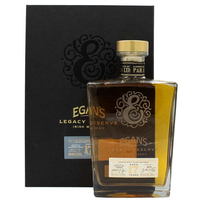 Το Egan's 17 Year Old Legacy Reserve 3 Cadillac Cask είναι ένα εκλεπτυσμένο ιρλανδέζικο single malt που ωρίμασε για 17 χρόνια σε αμερικάνικα ex-bourbon βαρέλια και ολοκληρώνει την παλαίωσή του σε Cadillac casks από τη Γαλλία. Η διαδικασία αυτή προσδίδει στο ουίσκι βαθιά πολυπλοκότητα και ισορροπία, ενώ τα αρώματα μελιού, βανίλιας, ώριμων φρούτων και μπαχαρικών αναδεικνύουν τον μοναδικό του χαρακτήρα.