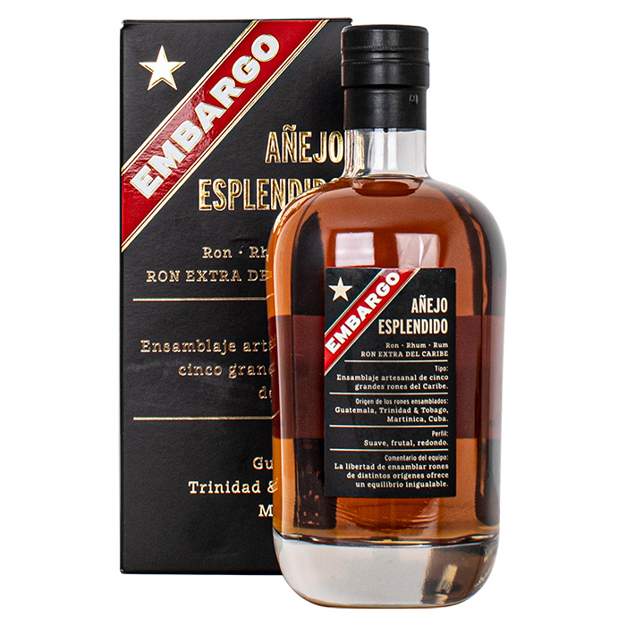 Το Embargo Anejo Esplendido είναι ένα κομψά κατασκευασμένο ρούμι κουβανικού στιλ, γνωστό για την πλούσια, ισορροπημένη γεύση και το απαλό φινίρισμα του.