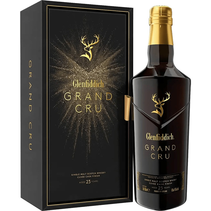 Το Glenfiddich Grand Cru 23 YRS ολοκληρώνει την ωρίμανσή του σε γαλλικά βαρέλια cuvee, τα οποία πρώτα φιλοξένησαν τους καλύτερους αφρώδεις οίνους. Αυτό το εξαιρετικά πλούσιο ουίσκι, ήδη έντονο σε γεύση χάρη στη μακρά παλαίωση σε αμερικανικά και ευρωπαϊκά δρύινα βαρέλια στο αποστακτήριο Glenfiddich, είναι ένα μοναδικά εξαιρετικό ουίσκι!