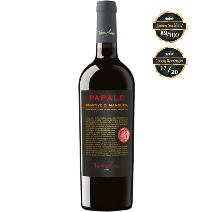 Το Varvaglione Papale Oro είναι ένα εντυπωσιακό γενναιόδωρο και πλούσιο κρασί με έντονο κόκκινο χρώμα. Αρώματα μαρμελάδας φρούτων, μαύρο κεράσι, κασσίς, δαμάσκηνο καπνό, μπαχαρικά και στόμα στρογγυλό και παιχνιδιάρικο είναι ορισμένα από τα στοιχεία που το χαρακτηρίζουν. Τα αρώματα της μύτης συνεχίζουν και στο στόμα αφήνοντας νότες μαύρης σοκολάτας, γλυκόριζας, μέντας και καφέ. Η επίγευση είναι μακρά και λίγο γλυκιά και θυμίζει καραμέλα και λουκούμι. Συνοδέψτε το με πλούσια πιάτα, ψητά και μαγειρευτά κρέατα, κυνήγι, αλλαντικά και πρώτα πιάτα με βάση το κρέας. Επίσης είναι εξαιρετικό με σούπες και τυριά όπως το Pecorino Romano.