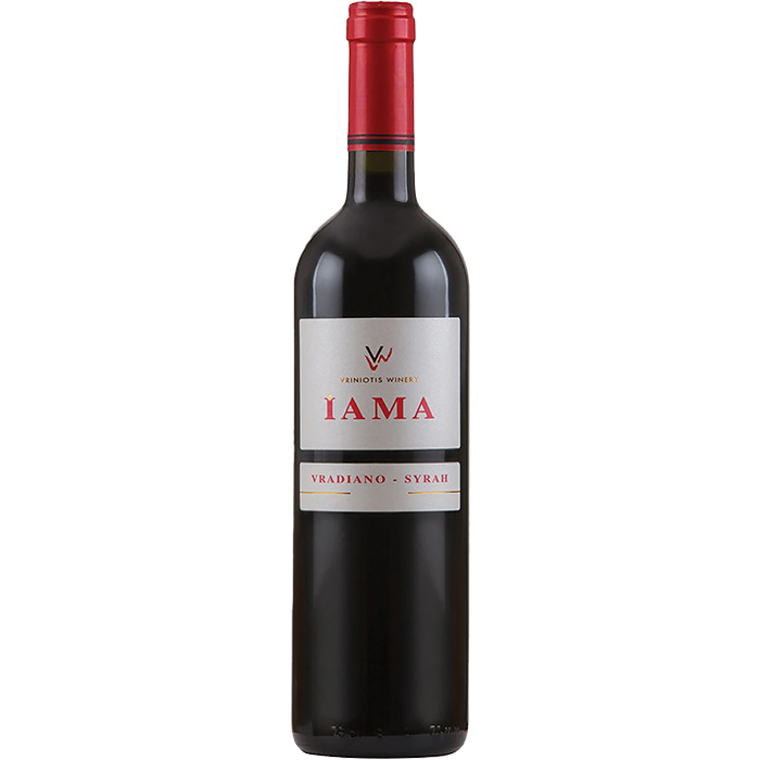 Το Ίαμα Ερυθρός Ξηρός συνδυάζει δύο πολύ γνωστές ποικιλίες σταφιλιών ώστε να προκύψει το τελικό αποτέλεσμα. Η ποικιλία "Βραδυανό" με προέλευση την Εύβοια, και η ποικιλία Syrah με προέλευση τη Γαλλία, κάνουν το κρασί αυτό μοναδικό το οποίο είναι έτοιμο προς κατανάλωση με δυνατότητα περαιτέρω παλαίωσης για τουλάχιστον 4 χρόνια.