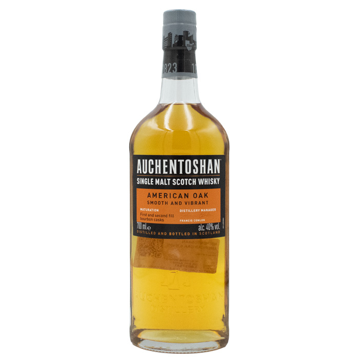 Auchentoshan American Oak is a smooth and approachable single malt Scotch whisky, triple-distilled and matured exclusively in first-fill American oak bourbon casks. This process imparts rich vanilla, coconut, and citrus notes, balanced by hints of spice and toasted oak, creating a light yet flavorful profile.