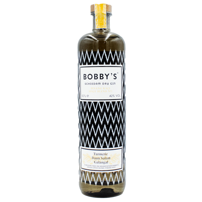 Bobby's Pinang Raci Spice Blend No.1 is a bold tribute to Indonesian heritage, crafted as a contemporary Schiedam Dry Gin. Inspired by the founder's grandfather, who infused Dutch jenever with the spices of his homeland, this gin harmonizes Eastern botanicals like turmeric, galangal, lemongrass, and daun salam with classic Western elements such as juniper and sweet orange.