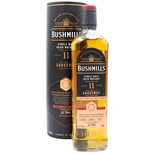 Bushmills 11 Years Old Cognac Cask Finish is a rich and complex Irish whiskey that showcases the brand's mastery of cask finishing. Initially aged for nearly a decade in bourbon and sherry casks, it is then further matured in select Cognac casks, adding layers of deep fruitiness and refined spice.