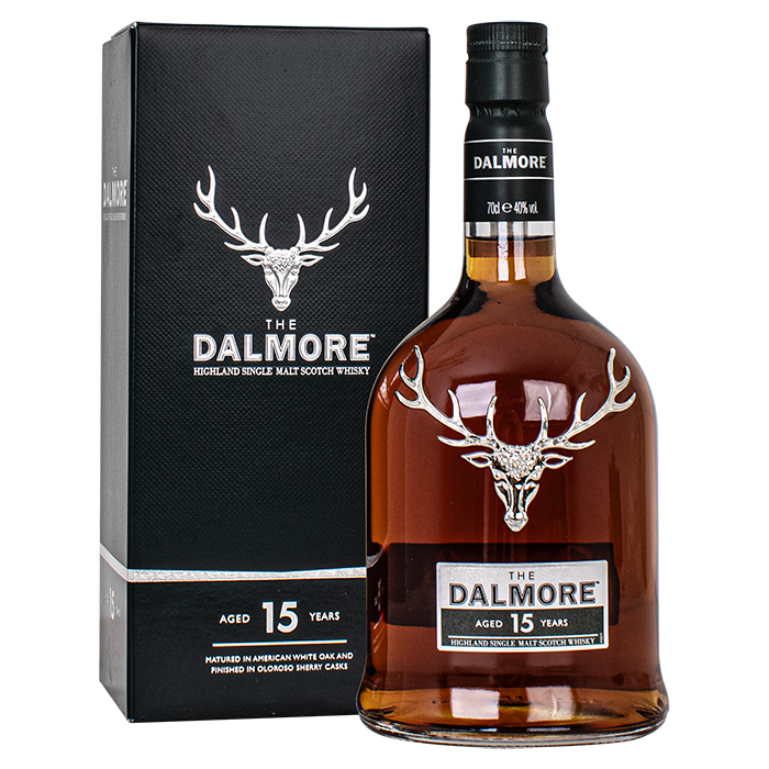The Dalmore 15 Year Old is a rich and sophisticated single malt Scotch whisky, known for its deep amber color and complex flavor profile. It is matured for 12 years in American white oak ex-bourbon casks, followed by a final maturation in three different sherry casks - Amoroso, Apostoles, and Matusalem Oloroso - for an additional three years.