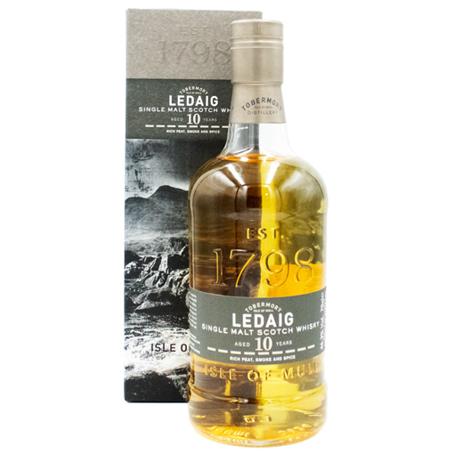 Ledaig 10-Year-Old is a bold and smoky expression from the Tobermory Distillery on the Isle of Mull. The whisky is aged in ex-bourbon casks, which impart hints of vanilla, citrus, and a subtle sweetness that balances the intense peatiness.