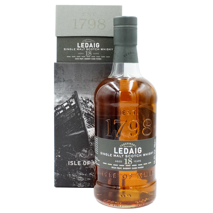 Ledaig 18 Year Old is a rich and smoky whisky from the Tobermory Distillery on the Isle of Mull. Aged in ex-bourbon casks before being finished in sherry casks, it boasts a deep, complex character with layers of dried fruit, maritime peat, and warming spice.