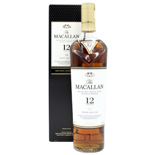 The Macallan 12 Year Old Sherry Oak is a premium single malt Scotch whisky known for its rich and complex flavor profile. Aged for 12 years in sherry-seasoned oak casks, it offers a harmonious blend of dried fruits and spices.