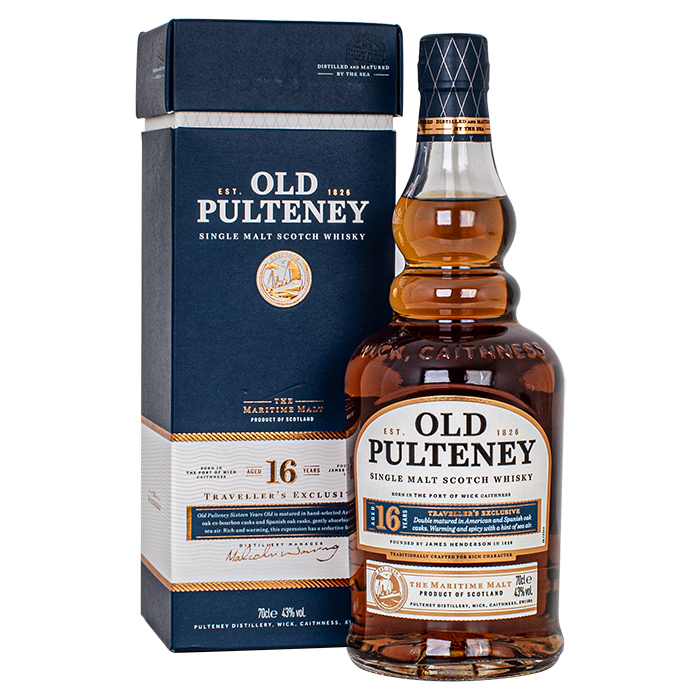 The Old Pulteney 16YRS is a single malt Scotch whisky from the northern coastal town of Wick, Scotland. Known as the "Maritime Malt," this expression reflects the sea's influence, boasting a complex aroma with notes of salted caramel, honey, and a touch of citrus zest.