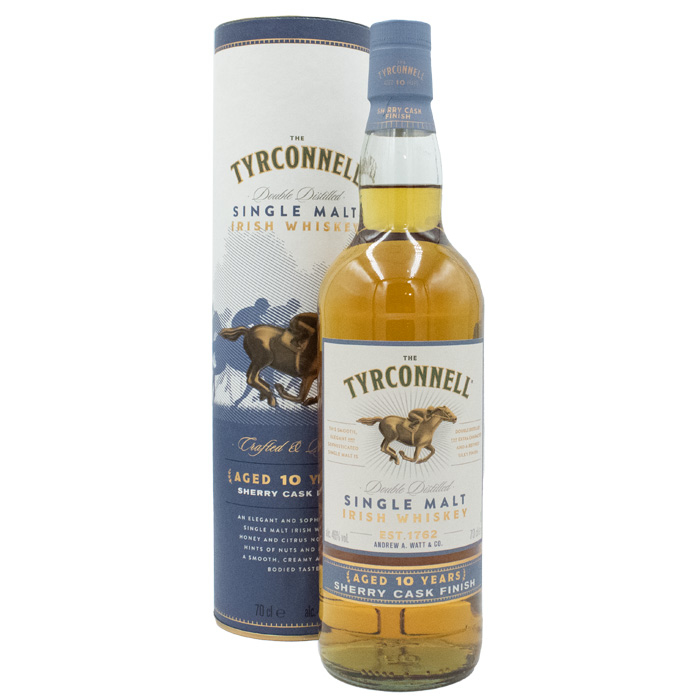 Tyrconnell 10 Years Old Sherry Cask Finish is a rich and complex Irish whiskey that has undergone a unique maturation process, spending a decade aging in bourbon casks before being finished in Oloroso sherry casks.